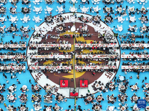 這是第25屆盱眙龍蝦節(jié)歡樂龍蝦宴現(xiàn)場(6月12日攝,無人機(jī)照片)。(新華社記者 李博 攝)