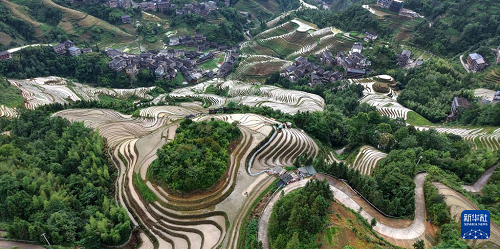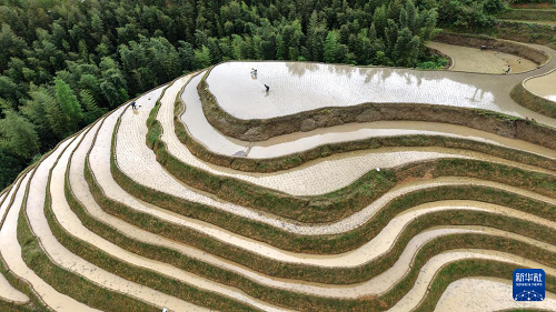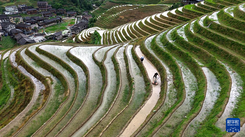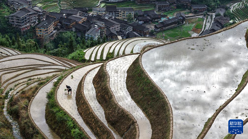 連日來,廣西桂林市龍勝各族自治縣龍脊梯田轄區(qū)內(nèi)的各村寨進入夏種農(nóng)忙時節(jié),村民忙著耙田、插秧,梯田上一派忙碌景象。