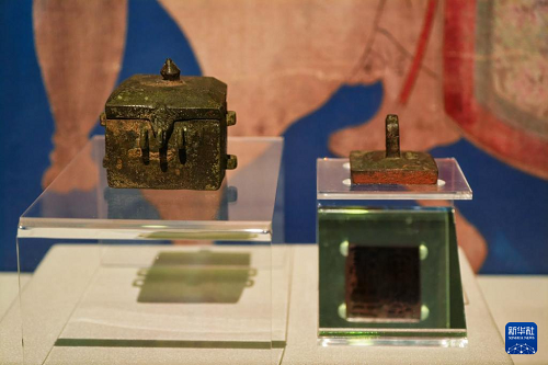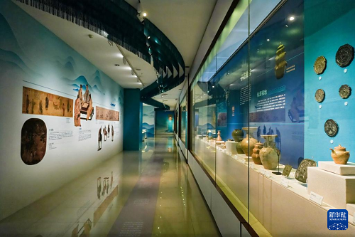 這是浙江紹興新昌博物館的“唐詩之路”展覽展出的文物(6月18日攝)。(新華社發(fā) 張瑞 攝)