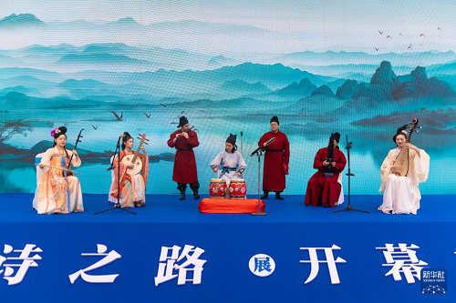 這是6月18日拍攝的浙江紹興新昌博物館的“唐詩之路”展覽開幕式現(xiàn)場(chǎng)。(新華社發(fā) 張瑞 攝)