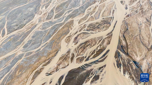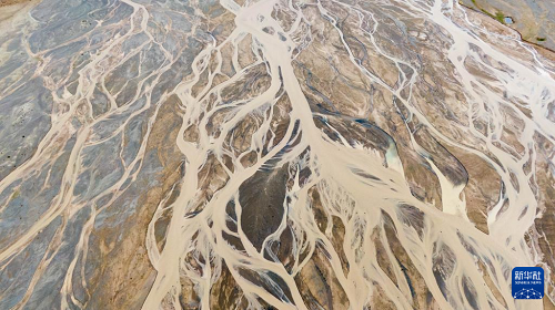 這是6月23日拍攝的野牛溝辮狀河流(無人機照片)。(新華社記者 王艷 攝)