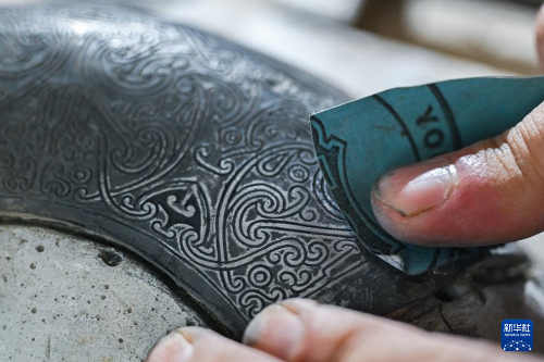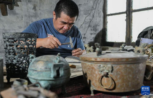 鉛錫刻鏤技藝是用于制作、復(fù)制古代青銅器的一種制模技藝,2011年入選國(guó)家級(jí)非物質(zhì)文化遺產(chǎn)名錄。該技藝?yán)勉U錫柔軟延展的特性,通過(guò)打擊、扭曲、編織、擠壓、刻鏤等手法,把平面紋飾和立體、鏤空等造型結(jié)合起來(lái),最終完成特定的模型。