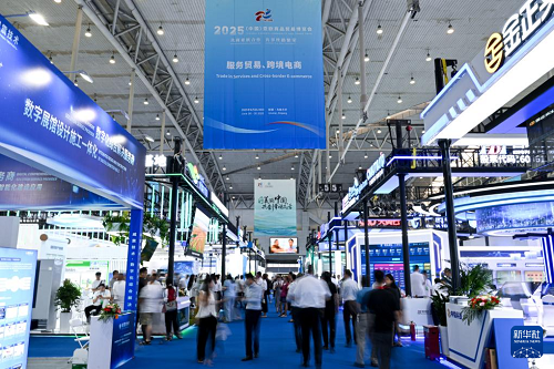 6月26日拍攝的2025(中國(guó))亞歐商品貿(mào)易博覽會(huì)服務(wù)貿(mào)易、跨境電商展區(qū)。(新華社記者 辛悅衛(wèi) 攝)