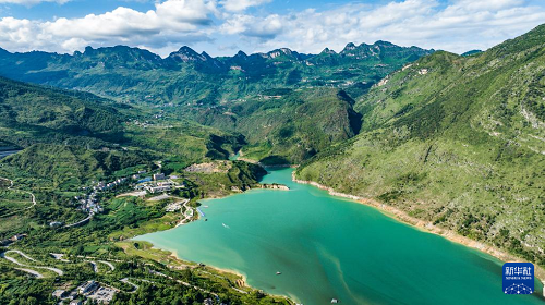夏日時(shí)節(jié),貴州省六盤(pán)水市六枝特區(qū)牂牁江風(fēng)景名勝區(qū)草木蒼翠、江水碧藍(lán),青山綠水與道路村莊組成一幅幅美麗畫(huà)卷。