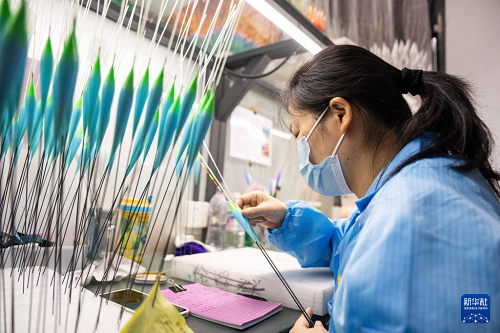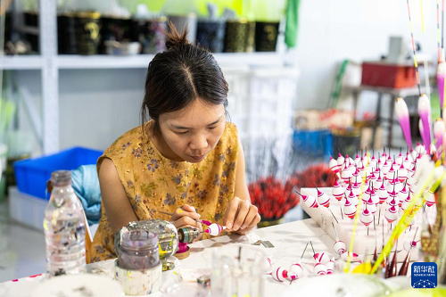 7月1日,在位于臨湘市浮標(biāo)小鎮(zhèn)的臨湘民間藝人釣具有限公司生產(chǎn)車間,工人在生產(chǎn)浮標(biāo)。(新華社記者 余春生 攝)