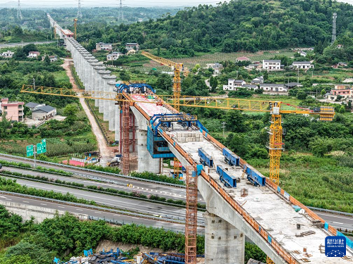 7月8日,由中鐵五局承建的成渝中線高鐵土橋樞紐互通雙線特大橋連續(xù)梁順利合龍,該連續(xù)梁全長(zhǎng)約242米,是成渝中線高鐵重慶段跨度最大的連續(xù)梁。土橋樞紐互通雙線特大橋位于重慶市銅梁區(qū),全長(zhǎng)3271.6米,上跨重慶三環(huán)高速及銅安高速公路,共設(shè)有92個(gè)橋墩,2個(gè)橋臺(tái)。
