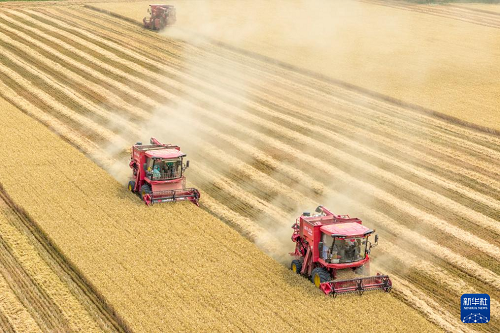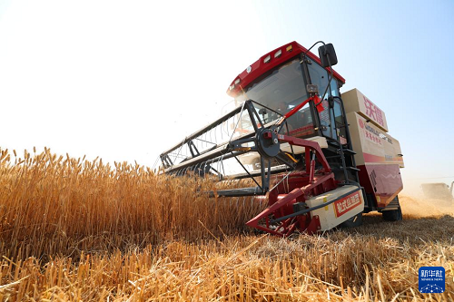6月10日,河北省石家莊市欒城區(qū)柳林屯鄉(xiāng)東牛村村民駕駛農(nóng)機收割小麥。(新華社發(fā) 梁子棟 攝)