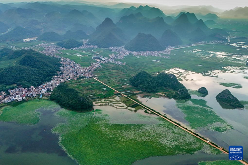7月15日拍攝的普者黑景區(qū)風(fēng)光(無人機(jī)照片)。(新華社發(fā) 彭奕凱 攝)