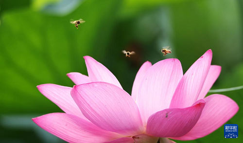 7月22日,北京北海公園內(nèi)荷花盛開。(新華社發(fā) 戴明軒 攝)