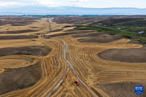 近日,在位于天山北麓的新疆維吾爾自治區(qū)伊犁哈薩克自治州特克斯縣,成熟的小麥迎來(lái)收獲。當(dāng)?shù)剞r(nóng)民搶抓有利天氣,開(kāi)展夏收工作。
