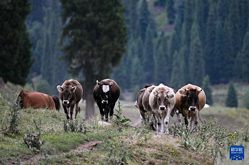 8月2日,牛群漫步在庫爾德寧。(新華社記者 辛悅衛(wèi) 攝)