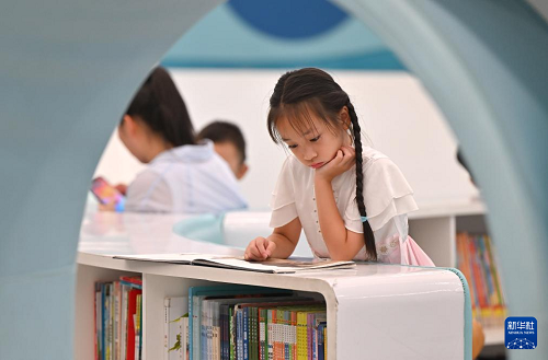 8月3日,小朋友在位于海口市的海南省圖書館讀書。(新華社記者 郭程 攝)