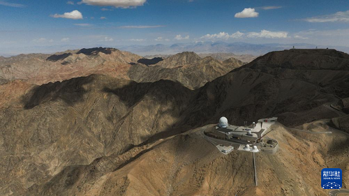 這是7月29日在冷湖鎮(zhèn)賽什騰山拍攝的中國科學技術大學和中國科學院紫金山天文臺聯(lián)合研制的大視場光學成像望遠鏡——墨子巡天望遠鏡(無人機照片)。(新華社記者 張龍 攝)