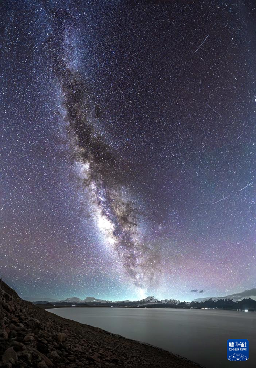 這是在佩枯錯(cuò)拍攝的銀河(8月14日攝)。周邊是英仙座流星雨的幾顆流星。(新華社發(fā) 馬理朝 攝)