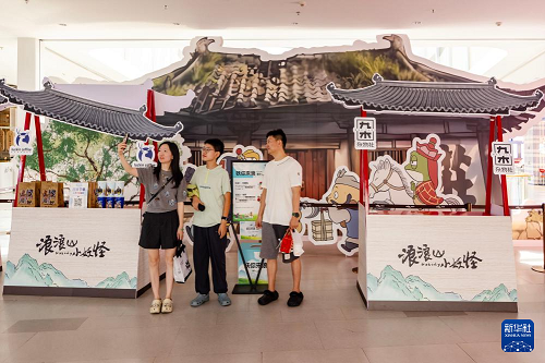8月17日,觀眾在江蘇省泰州市萬象影城動畫電影《浪浪山小妖怪》海報前拍照留念。(新華社發(fā) 湯德宏 攝)