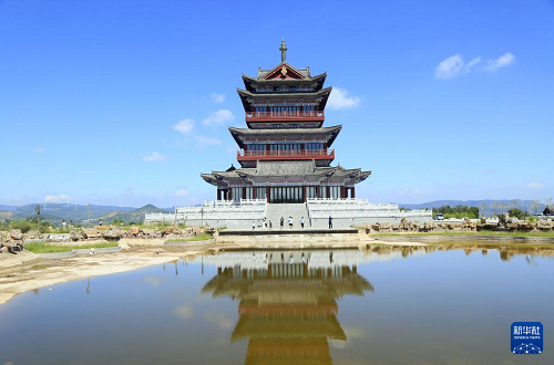 8月31日,游客在河南省洛陽市汝陽縣瑞云山森林公園瑞云閣觀光。(新華社發(fā) 康紅軍 攝)