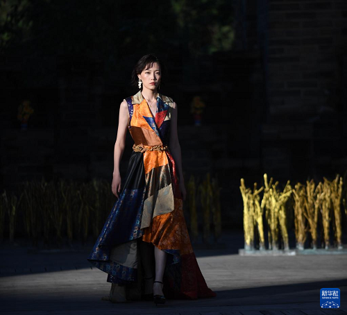 9月17日,模特在閉幕秀上展示朱炳仁設(shè)計(jì)的服飾。(新華社記者 魏海 攝)