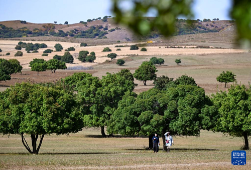 9月27日,游客在興安盟科爾沁右翼中旗五角楓生態(tài)旅游景區(qū)游玩。(新華社記者 貝赫 攝)