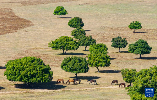 9月27日拍攝的興安盟科爾沁右翼中旗五角楓生態(tài)旅游景區(qū)秋景(無人機照片)。(新華社記者 貝赫 攝)