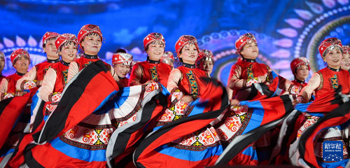 9月28日,農(nóng)民廣場舞表演隊在山東省鄒平市迎國慶群眾廣場舞大賽上表演。(新華社發(fā) 董乃德 攝)