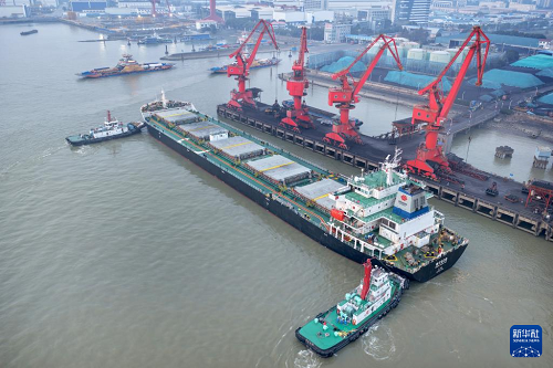 12月29日,南通港一處碼頭準備卸運電煤(無人機照片)。(新華社發(fā) 許叢軍 攝)