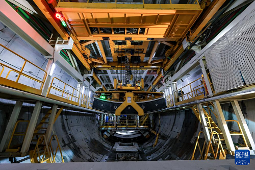 1月6日,“深江1號”盾構(gòu)機(jī)在珠江入海口海平面下掘進(jìn)。(新華社記者 毛思倩 攝)