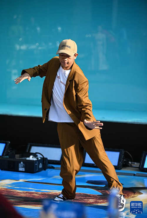 1月15日,參賽選手進(jìn)行陸地極限舞蹈表演。(新華社記者 蒲曉旭攝)