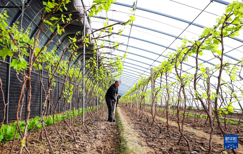 1月20日,河北省唐山市海港經(jīng)濟開發(fā)區(qū)王灘鎮(zhèn)農(nóng)民在葡萄大棚松土。(新華社發(fā) 劉滿倉 攝)