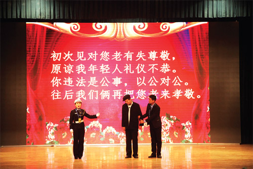 1月27日至29日,偏關(guān)縣公安局交警大隊(duì)交通安全文藝宣傳隊(duì)在隊(duì)長們的帶領(lǐng)下,先后走進(jìn)市實(shí)驗(yàn)中學(xué)、市客運(yùn)中心、國家電網(wǎng)忻州供電分公司進(jìn)行了三場演出,用自編自導(dǎo)自演、群眾喜聞樂見的“漫翰調(diào)”、“二人臺”、北路梆子、民歌等一系列極具地域文化特色的地方小戲、說唱歌舞等曲藝形式進(jìn)行宣傳演出,贏得滿堂喝彩,場場掌聲雷動。作為春節(jié)回家路上的一道文化盛宴,這次春節(jié)前的平安出行警示教育“送安全下鄉(xiāng)”巡演是我市公安交警精心策劃、編排的春運(yùn)交通安全宣傳行動之一。28日,市客運(yùn)中心人頭攢動,熙熙攘攘,大廳外懸掛的橫幅標(biāo)語“守護(hù)您的平安出行,保障道路安全暢通是每一位交警的神圣職責(zé)!”格外醒目。候車大廳里,暖意融融,市公安局交警支隊(duì)組織的春運(yùn)交通安全文藝演出正在進(jìn)行,交警版的民間小調(diào)《拜大年》、小品《警鐘聲聲》、雙簧《二愣子》等節(jié)目令人賞心悅目、捧腹不止。在歡笑之余,提醒和教育廣大群眾自覺抵制不文明、不安全交通行為,觀看演出的旅客和客車司機(jī)紛紛感慨,這樣的宣傳教育生動形象,人人愛看且耐人尋味,警示作用很大。