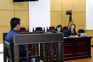 長城一日游的導(dǎo)游陳某,在車上收額外費用時遭到乘客申先生帶頭抵制。爭執(zhí)中,陳某在高速路上追打申先生,致其被車輛軋傷腳。昨天,陳某因涉嫌強迫交易罪,在昌平法院受審(如圖)。