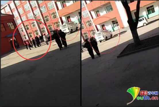 23日上午,當?shù)乜h醫(yī)院救護車來到學校,醫(yī)生為在宿舍的學生挨個進行相關檢查。同時一些學生家長也到校了解情況。(爆料者供圖)