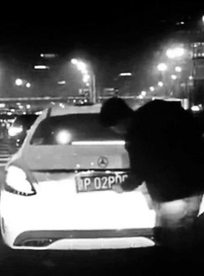 在北京一鬧市區(qū),一輛假冒京牌的白色奔馳汽車在眾目睽睽之下公然更換尾部號牌。網(wǎng)友在微博上發(fā)布舉報視頻后,北京交管局涉車隊聯(lián)合朝陽交通支隊迅速核查。3天后,涉事司機到交管部門接受詢問,并承認(rèn)使用其他機動車號牌的違法行為。