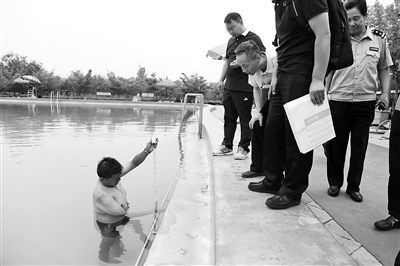為了了解事發(fā)現(xiàn)場的具體情況,昨天,本案承辦法官前往事發(fā)地,對本案進行現(xiàn)場勘驗。根據(jù)現(xiàn)場情況,梅女士溺水的事發(fā)地位于一處露天泳池。經(jīng)勘驗,泳池約為長方形,南北分為兒童區(qū)和成人區(qū)。成人區(qū)水深1.3米,水池為平底,東西長約45米,南北長約30米。泳池四周各有一個救生觀察臺。梅女士出事地點位于泳池成人區(qū)的東南角,經(jīng)工作人員在水中實地測量,水深1.3米,最近的救生觀察臺距出事地點約為10米。