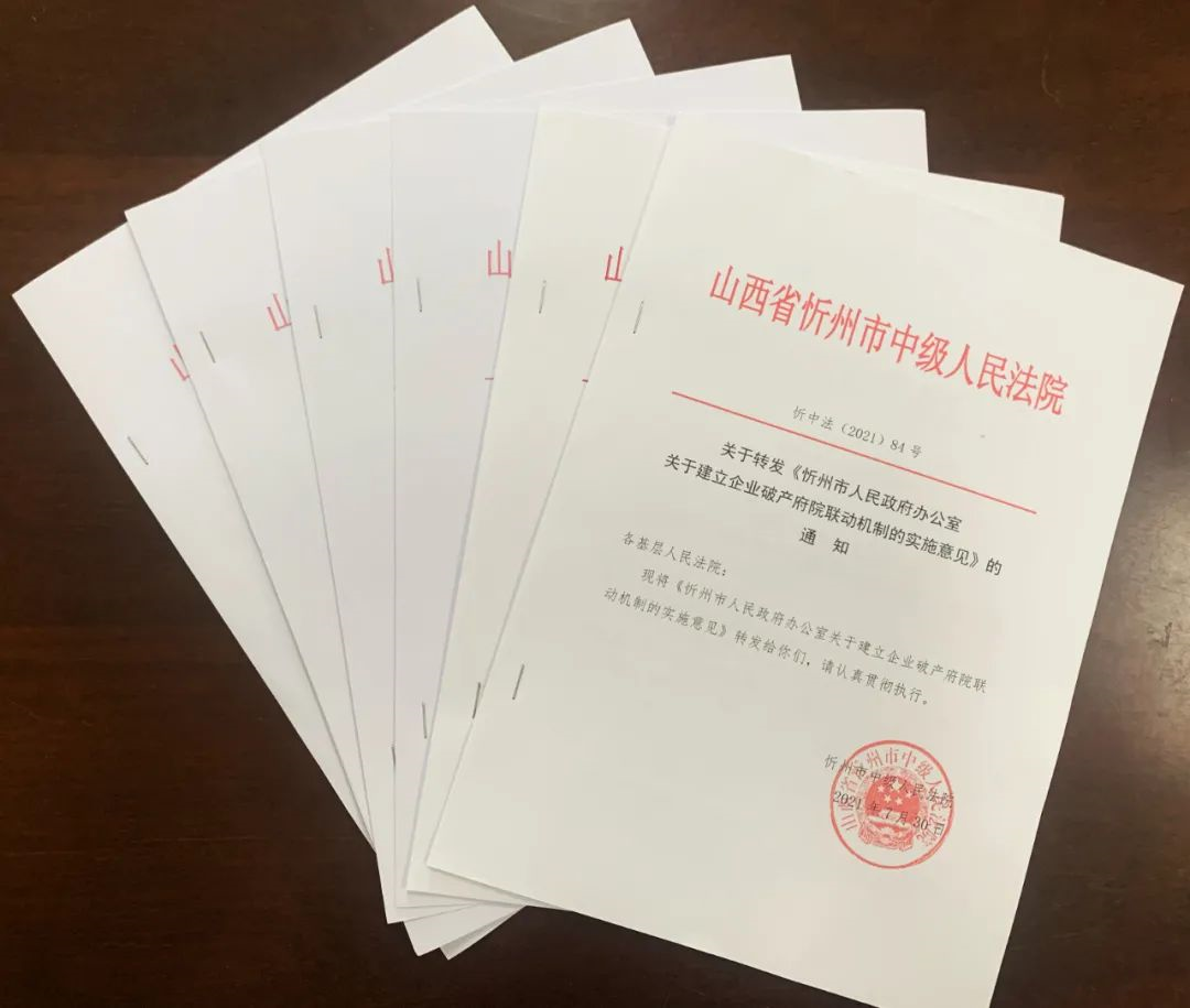 2021年7月30日,忻州市政府與忻州中院共同印發(fā)《關(guān)于建立企業(yè)破產(chǎn)府院聯(lián)動(dòng)工作機(jī)制的實(shí)施意見》。忻州正式建立企業(yè)破產(chǎn)府院聯(lián)動(dòng)工作機(jī)制,成立由市政府主要領(lǐng)導(dǎo)或受主要領(lǐng)導(dǎo)指派的分管領(lǐng)導(dǎo)和法院院長(zhǎng)擔(dān)任聯(lián)席會(huì)議共同召集人,各成員單位分管領(lǐng)導(dǎo)為聯(lián)席會(huì)議成員,負(fù)責(zé)統(tǒng)籌安排企業(yè)破產(chǎn)府院聯(lián)動(dòng)各項(xiàng)工作。
