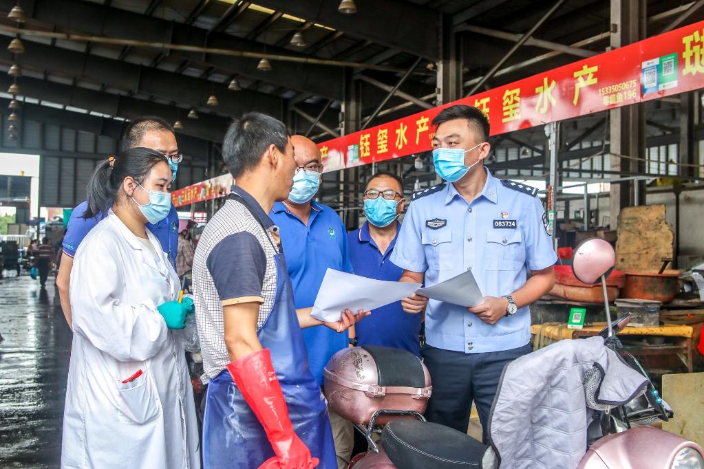 公安機(jī)關(guān)會(huì)同相關(guān)部門開展聯(lián)合檢查,民警向商戶開展法律宣傳。(公安部供圖)