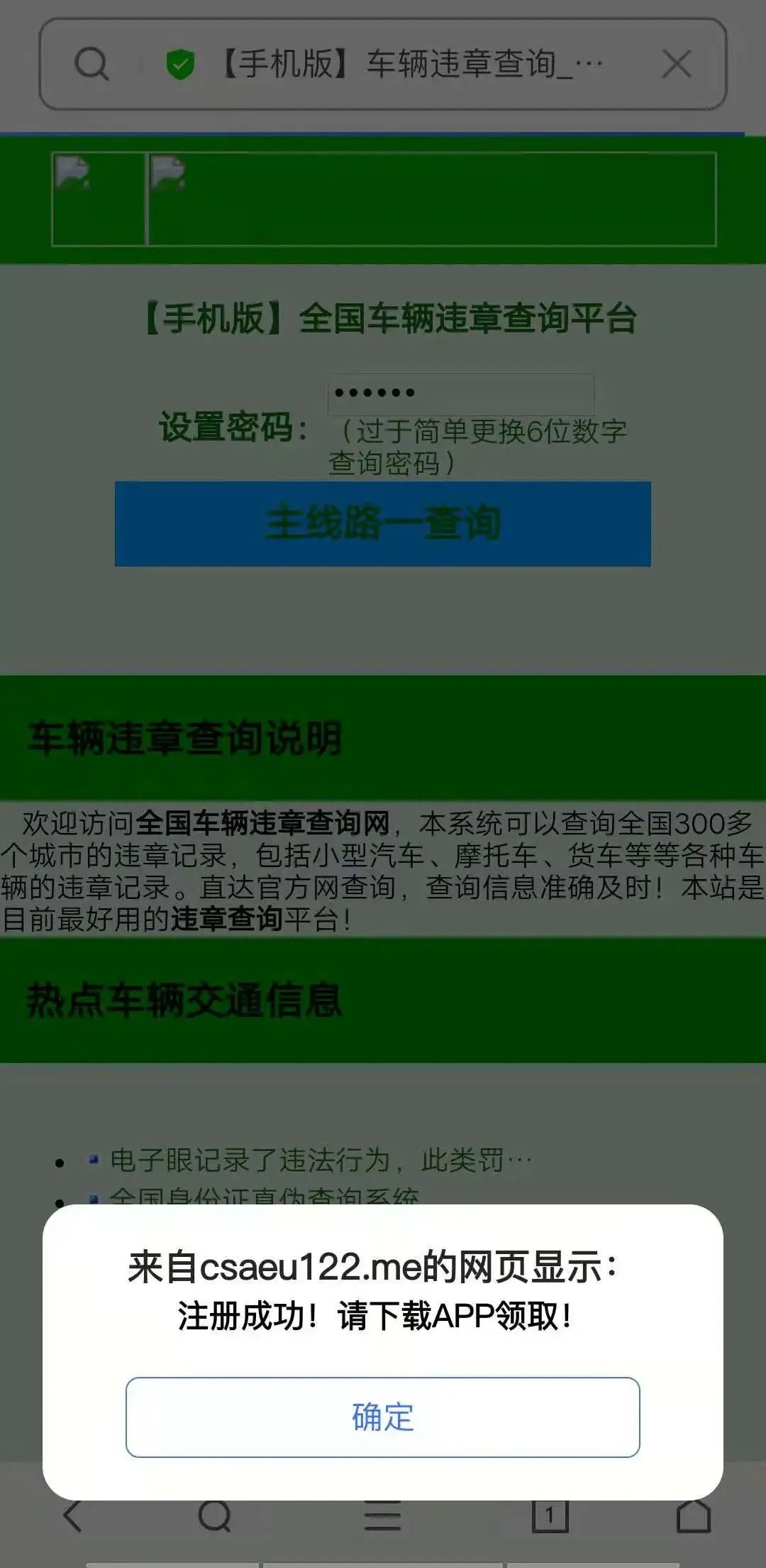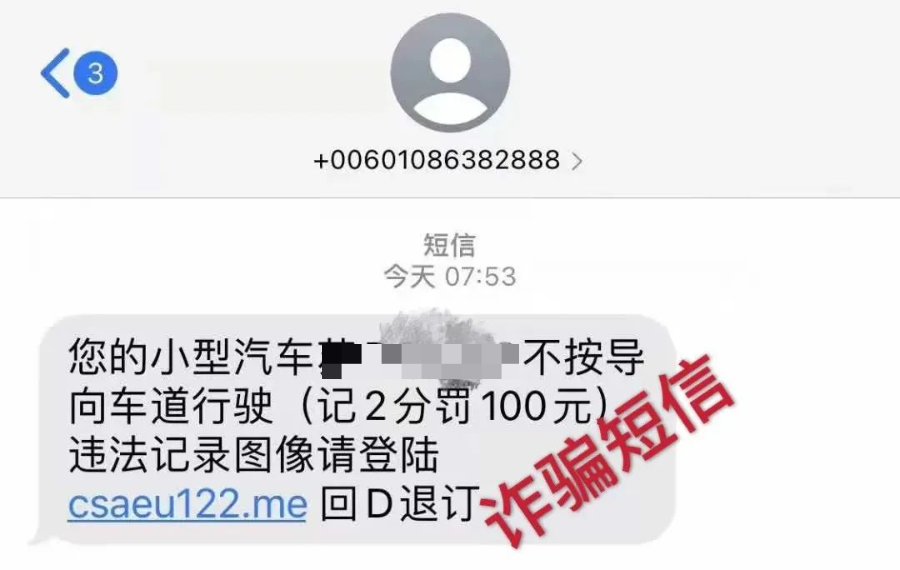 第一步:獲取信息。不法分子通過不正當(dāng)?shù)氖侄潍@取到受害者及車輛信息,然后通過改號(hào)軟件給車主發(fā)送“違章”的詐騙短信,并在短信中附上虛假網(wǎng)站的網(wǎng)址鏈接。