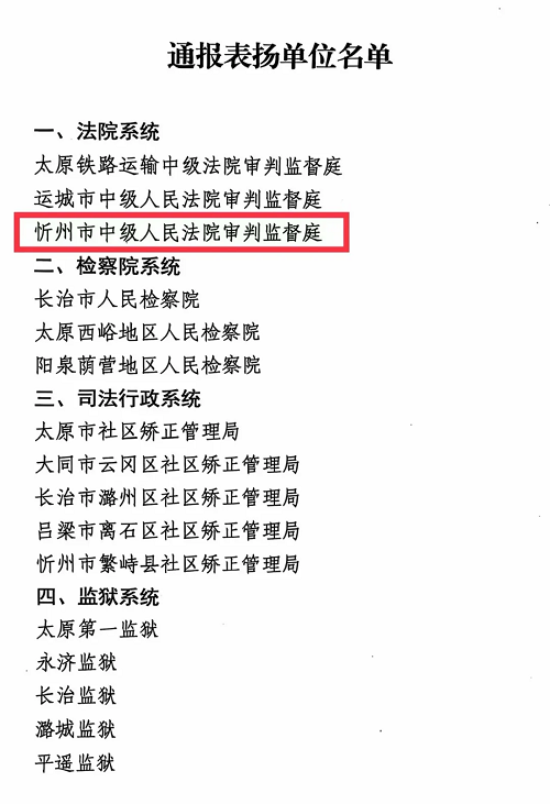 喜報!忻州中院審判監(jiān)督庭獲評全省減假暫工作表現(xiàn)突出單位