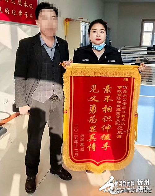 12月16日晚,一名市民因飲酒過量倒在雪夜路旁,幸得忻州市公安局交管支隊(duì)事故預(yù)防和處理指導(dǎo)大隊(duì)輔警范辰霞及時(shí)發(fā)現(xiàn)并救助,最終化險(xiǎn)為夷。12月22日,獲救市民專程送來錦旗,向危難時(shí)刻伸出援手的交警同志表達(dá)謝意。