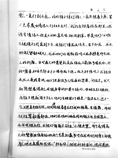 劉吉強(qiáng)還撰寫了一封控告信??馗嫘爬?,他描述了7天夢魘般的經(jīng)歷:辦案人員用腳踢他的臉,用手銬把他吊掛在鐵管做的橫梁上拳打腳踢,用電棍擊打身體的各部位。