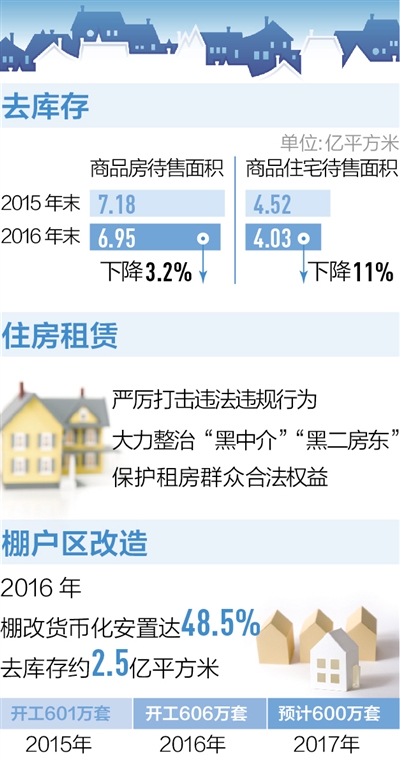 棚戶區(qū)改造是重大的民生工程。2015年、2016年,全國(guó)棚改分別開工了601萬套、606萬套,今年的計(jì)劃目標(biāo)是600萬套。陳政高介紹,今年中央棚改補(bǔ)助資金已經(jīng)有了安排,比去年有所提高,“今年還要進(jìn)一步推進(jìn)棚改貨幣化安置,特別是在三四線城市和縣城,要大幅度提高比例,加快棚改進(jìn)度、減少重復(fù)建設(shè)?!?/p>