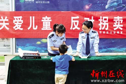 本報(bào)訊 近日,為進(jìn)一步提高人民群眾特別是廣大少年兒童的防拐意識(shí)和防拐能力,忻府區(qū)公安局刑偵大隊(duì)民警在體育廣場(chǎng)開(kāi)展了以“關(guān)愛(ài)兒童、反對(duì)拐賣”為主題的打拐宣傳活動(dòng)。