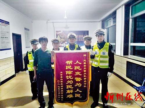 本報訊10月20日,五臺縣白家莊鎮(zhèn)寨里村村民馬某,給定襄縣交警大隊南莊中隊贈送了一面錦旗,上寫:“人民交警為人民,幫民除憂為民解難”,對南莊中隊民警快速出警,及時救助因失控而掉入深溝的貨車駕駛?cè)嗣撾x危險表示感謝。