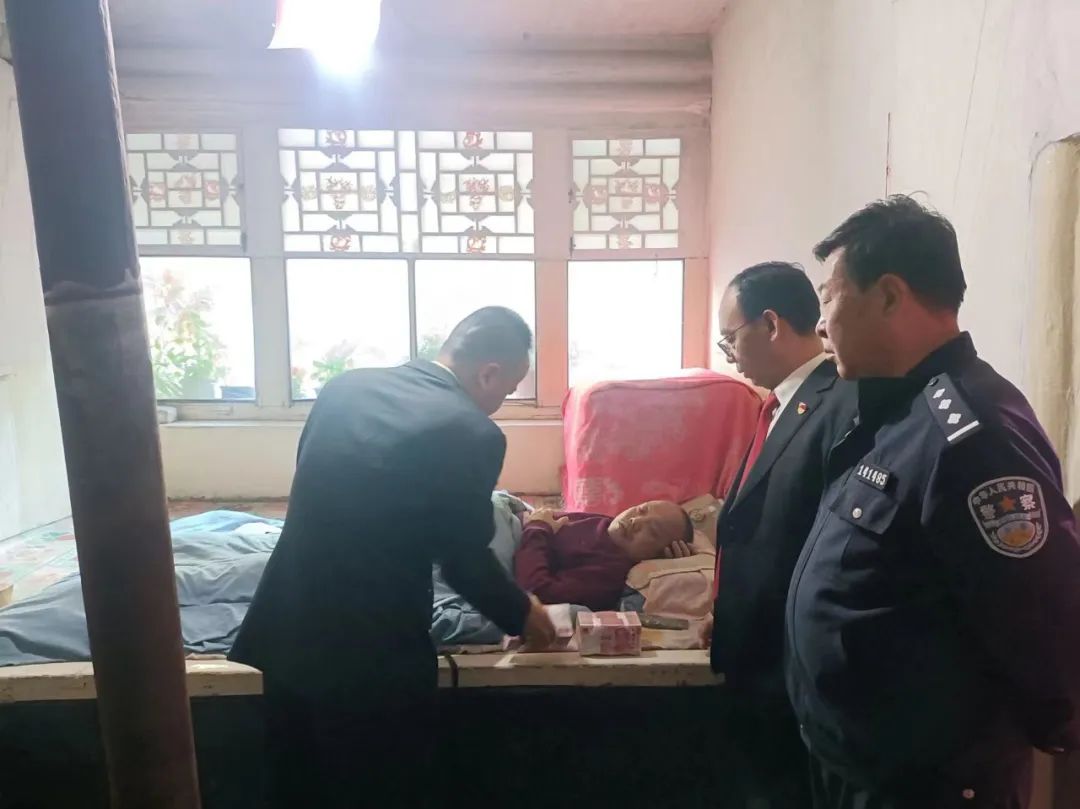 考慮到常某明腰部損傷、行動(dòng)不便,寧武法院執(zhí)行局局長(zhǎng)趙宇平?jīng)Q定到申請(qǐng)人家中發(fā)放執(zhí)行款。在常某明家中,執(zhí)行干警將21萬余元執(zhí)行款如數(shù)交到老常手中,并安慰其積極治療,保重身體。