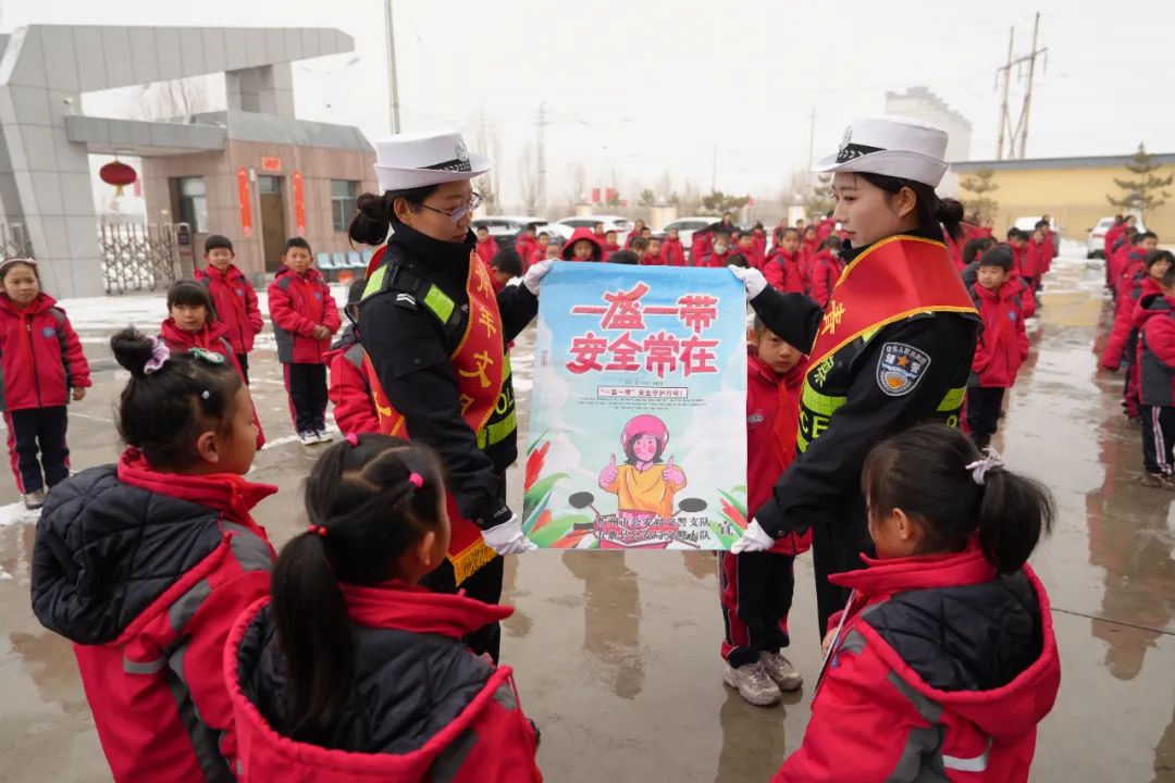活動中民輔警通過演示交通手勢指揮操,展示“一盔一帶”交通安全海報,發(fā)放交通安全宣傳彩頁等形式,使學(xué)生們理解并熟記基本的交通安全知識,增強自身“知危險、會避險”的能力,做到遵章守法,文明出行。