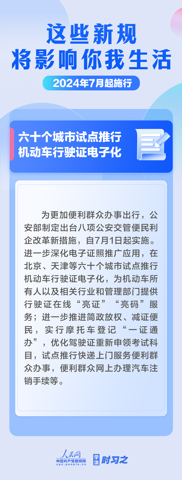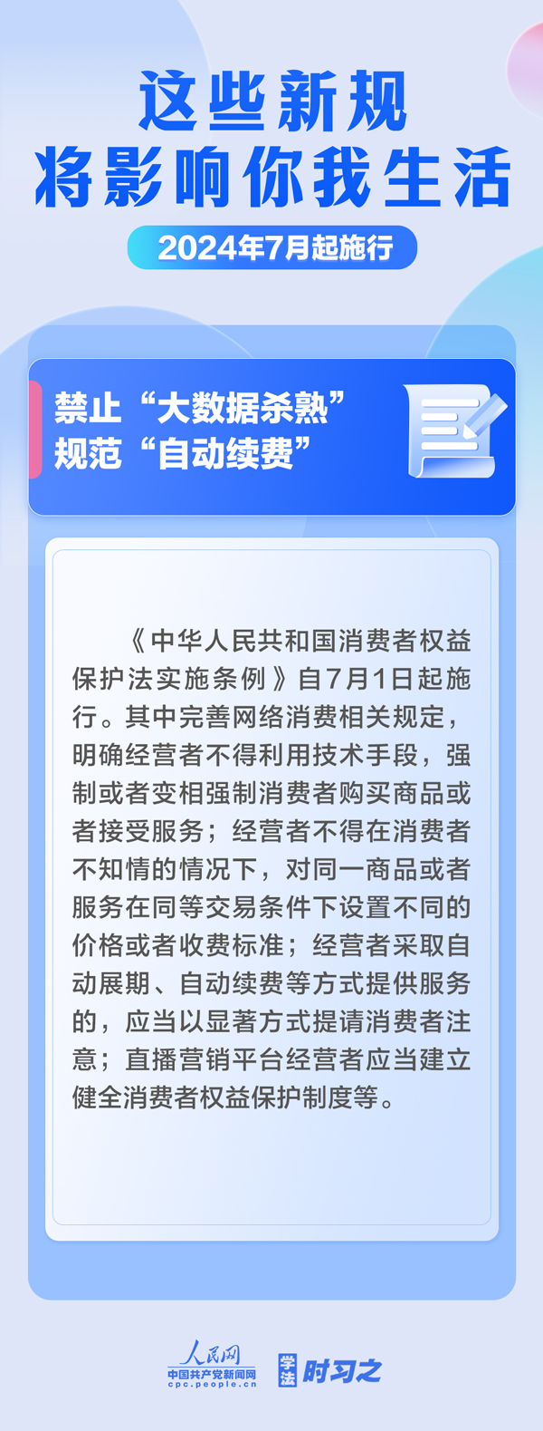 完善注冊資本認(rèn)繳登記制度;禁止“大數(shù)據(jù)殺熟”規(guī)范“自動續(xù)費(fèi)”;在六十個城市試點(diǎn)推行機(jī)動車行駛證電子化……7月起,這些新規(guī)施行,將影響你我生活。(薄晨棣)