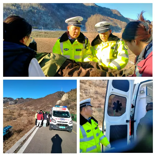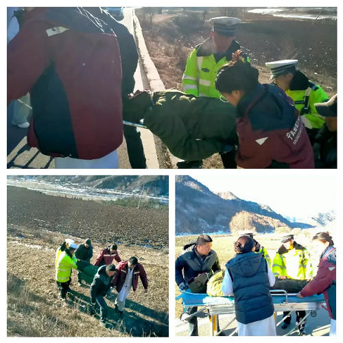 1月17日9時15分,寧武縣公安局交警大隊東寨中隊接到縣局110緊急指令,東黃線1KM+500處(窯子彎村附近)一輛農(nóng)用三輪車不慎墜入溝中,有人員受傷。接到指令后,中隊民輔警火速出動,趕赴事發(fā)地點實施救援處置。