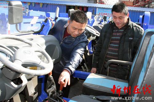 2月20日,原平市子干村的農(nóng)民正在農(nóng)機(jī)銷售處挑選時(shí)風(fēng)農(nóng)用車,春節(jié)過后,該市農(nóng)機(jī)市場紅紅火火,農(nóng)民們早備耕,為今年的春耕生產(chǎn)打下良好基礎(chǔ)。(趙春曉 攝)