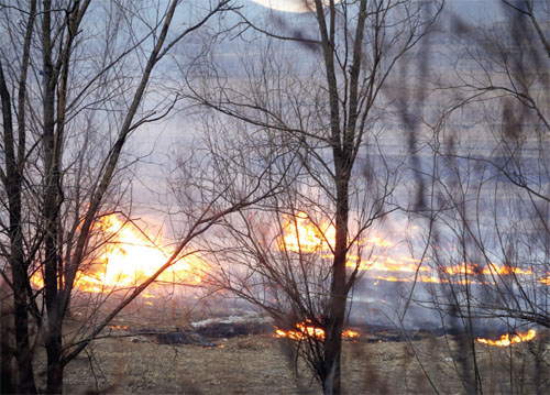 昨日(2月25日)傍晚,在忻阜高速與大運高速互通立交橋西南方向的茫茫田野里,只見煙霧彌漫,火光沖天?;鸷R谎弁坏竭呺H,升騰、翻滾的濃煙,在空中彌漫,嚴(yán)重影響司機(jī)視線,過往車輛無不小心翼翼。