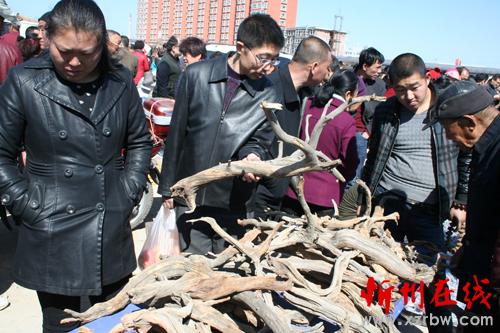 3月13日,原平市集貿(mào)市場(chǎng)上農(nóng)民正在賣形態(tài)各異廢棄的柏樹木根枝 他們變廢為寶促增收,很受市民喜愛收買。該市,采取多措并舉積極引導(dǎo)農(nóng)民增收致富,加快奔小康步伐。(趙月仁 攝)