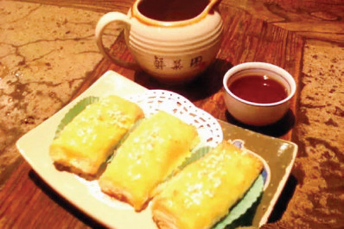 忻州瓦酥,以其形似瓦片而得名。瓦酥,約長10厘米、寬4 厘米、厚0.5 厘米,內(nèi)外皆呈金黃色,上印“忻州瓦酥”字樣。其質(zhì)酥脆,味甜香郁,堪稱爐食中一絕。久放色味不變,常食有健胃壯身的功用。